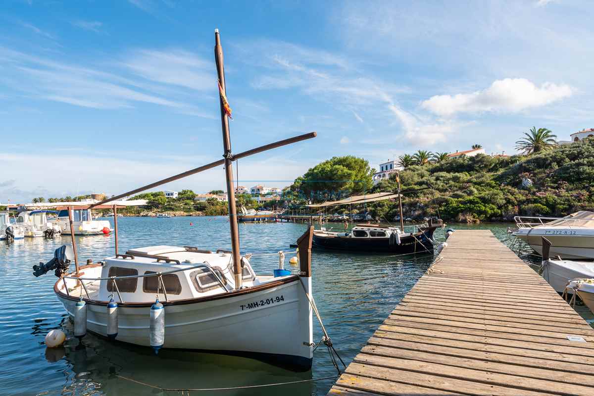 Cala Moli is located in the tranquil area close to Addaia on the northeast coast of the island. A short walk through the woodland in front of the property leads to the pretty wooden docks. The popular tourist resort Arenal d’en Castell, with its beautiful white sand beach, bars and restaurants, is just a 5-minute walk from the villa. Mahón, the current capital of the island, and Ciutadella, the historic capital of the island, are a 20 minute drive in opposite directions. Also close by on the north of the island, you will find popular Es Grau, an old fishing village with very shallow waters, as well as Arenal D’en Castell, Son Parc and Na Macaret.