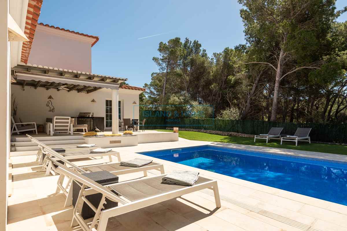 Island and Home are delighted to exclusively present this spectacular villa, built in 2008 and finished to an exceptional standard throughout, ideally located in the heart of Son Parc, Menorca.