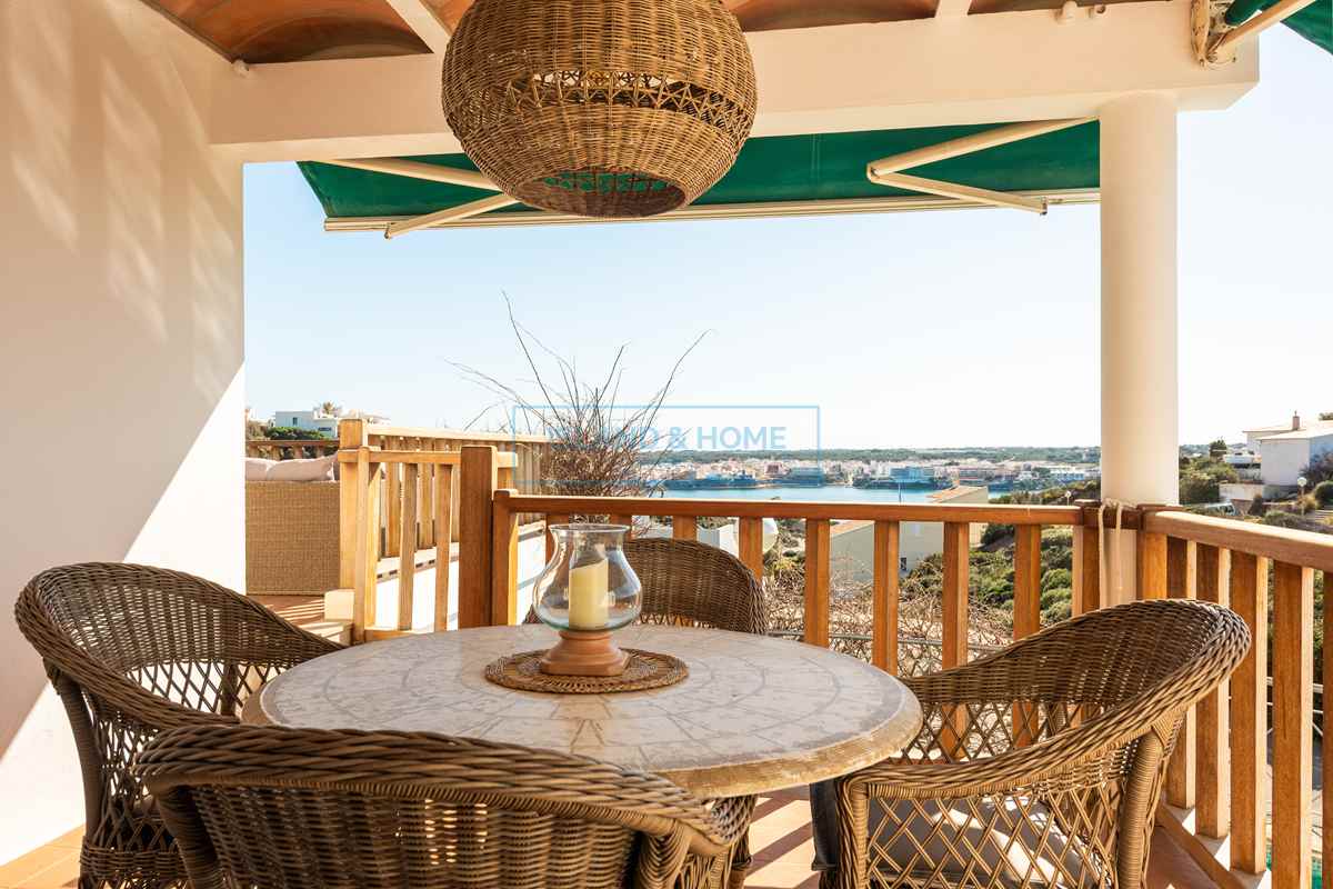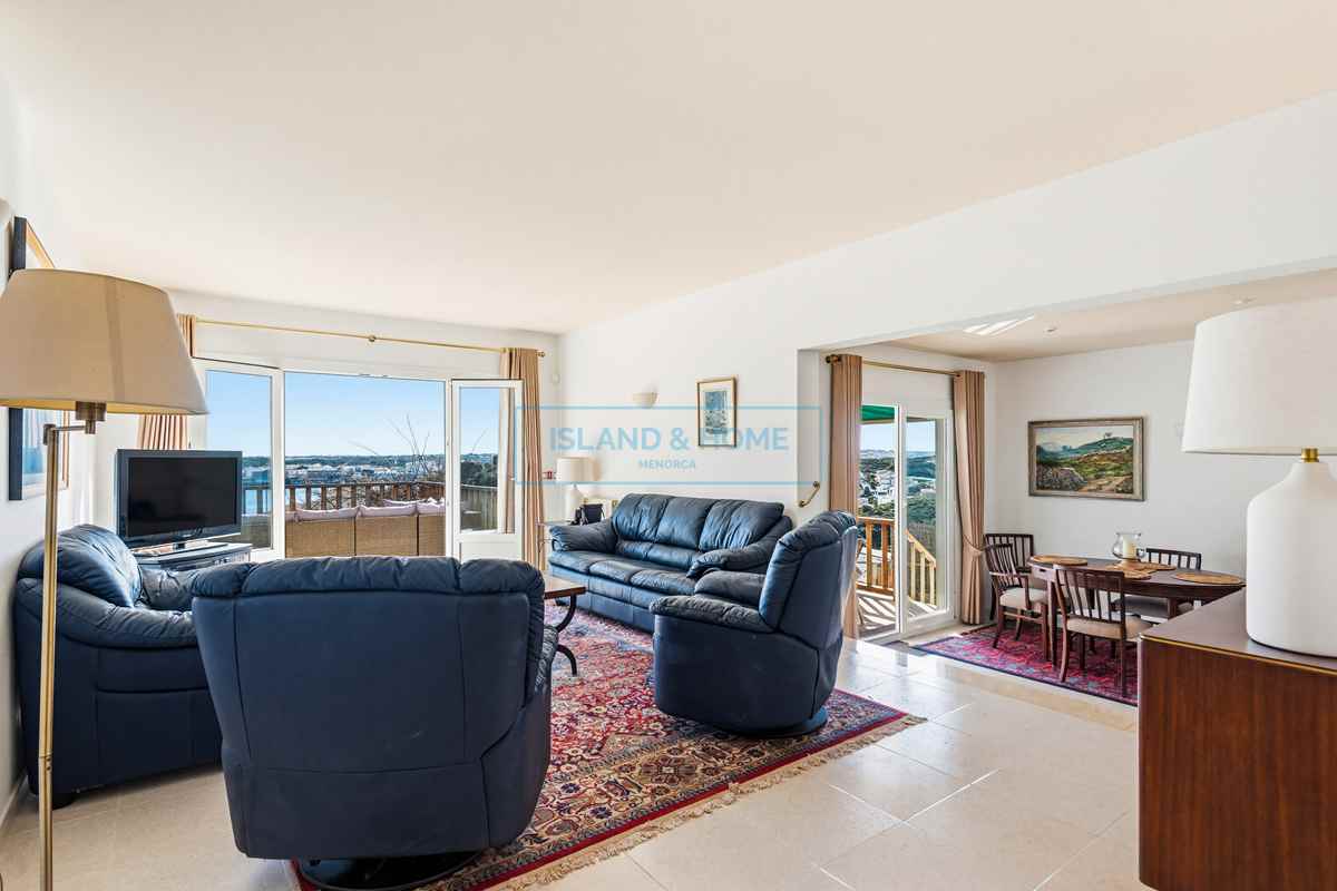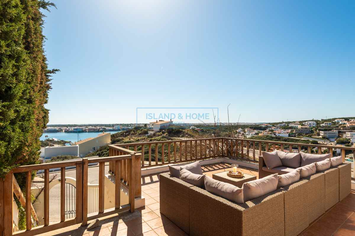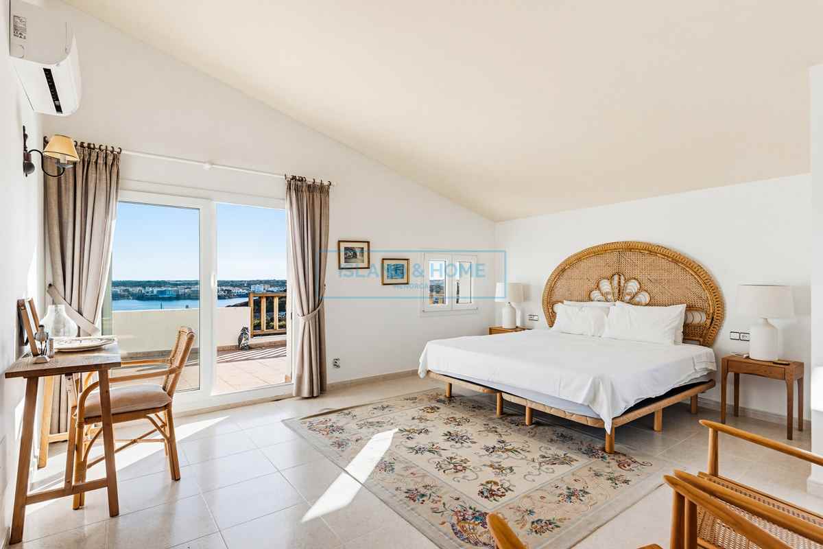 Enjoying sweeping views across the Port of Mahón, with Mahón town visible in the distance, this exceptional home is perfectly suited for comfortable year-round living. The main accommodation is arranged over two floors, thoughtfully designed to maximise both natural light and the stunning outlook.